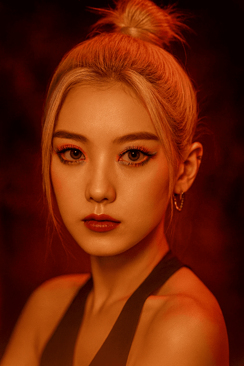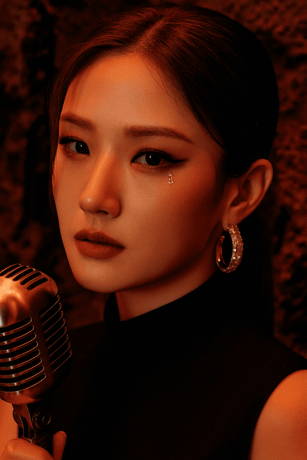 With a voice that soars like a shooting star, Park Sori brings soulful power and magnetic charisma to MIRE. Trained in musical theatre, her expressive runs and crystal-clear tone turn every chorus into an anthem of self-love—and that signature rhinestone tear lets you feel every note.